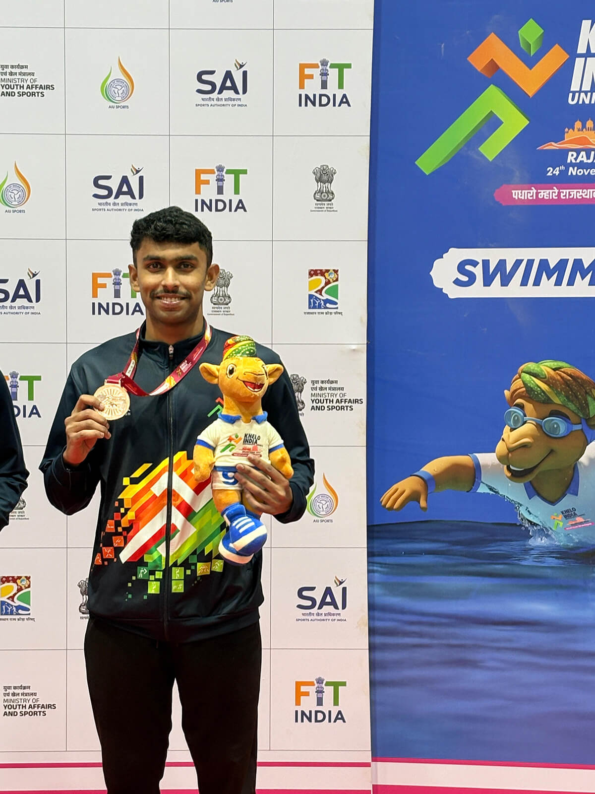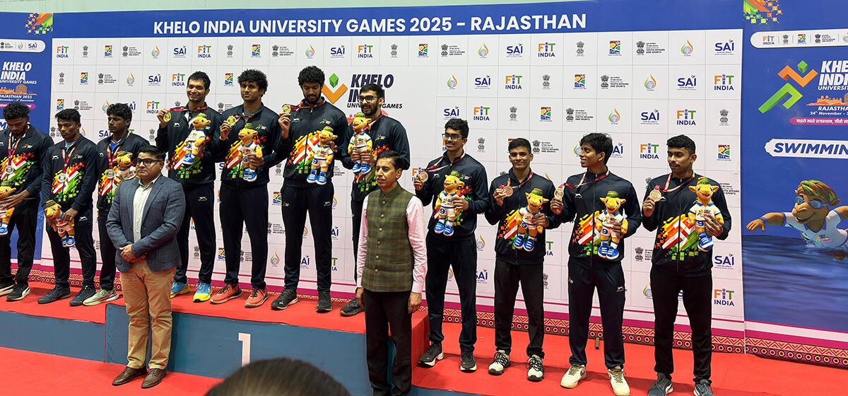 The prestigious event was held at the Sawai Man Singh Stadium, Jaipur, Rajasthan, in November 2025. Competing against talented athletes from across the country, Mr. Shubham Hole secured a Bronze Medal in the Swimming event, participating in the 4×200 M Relay category.