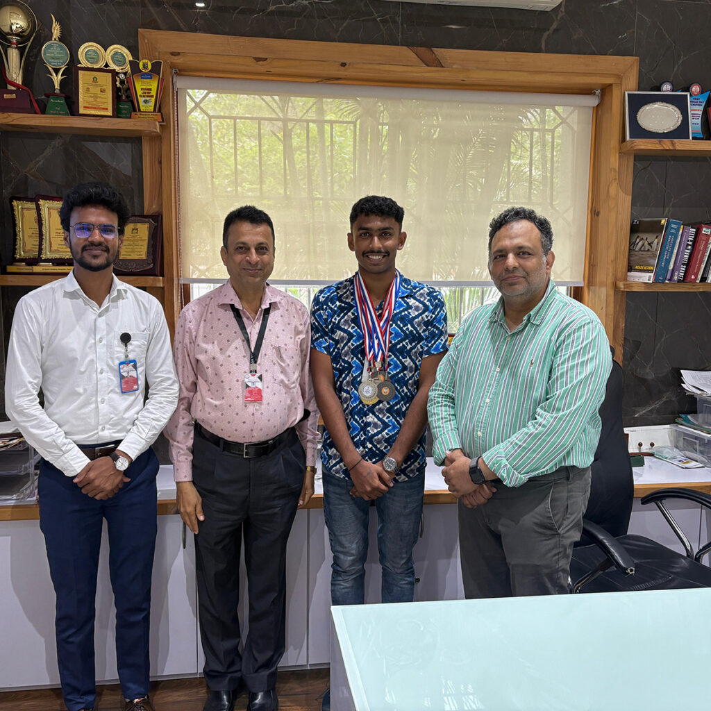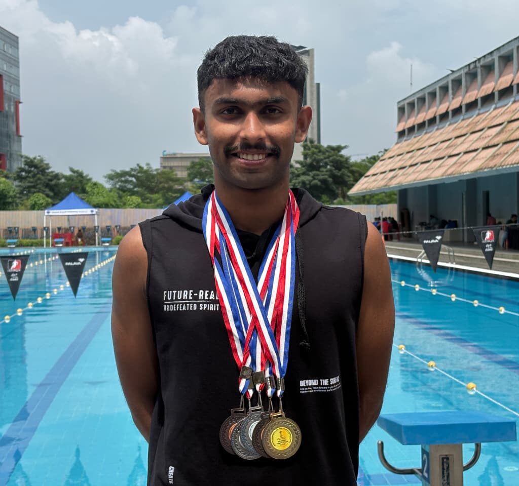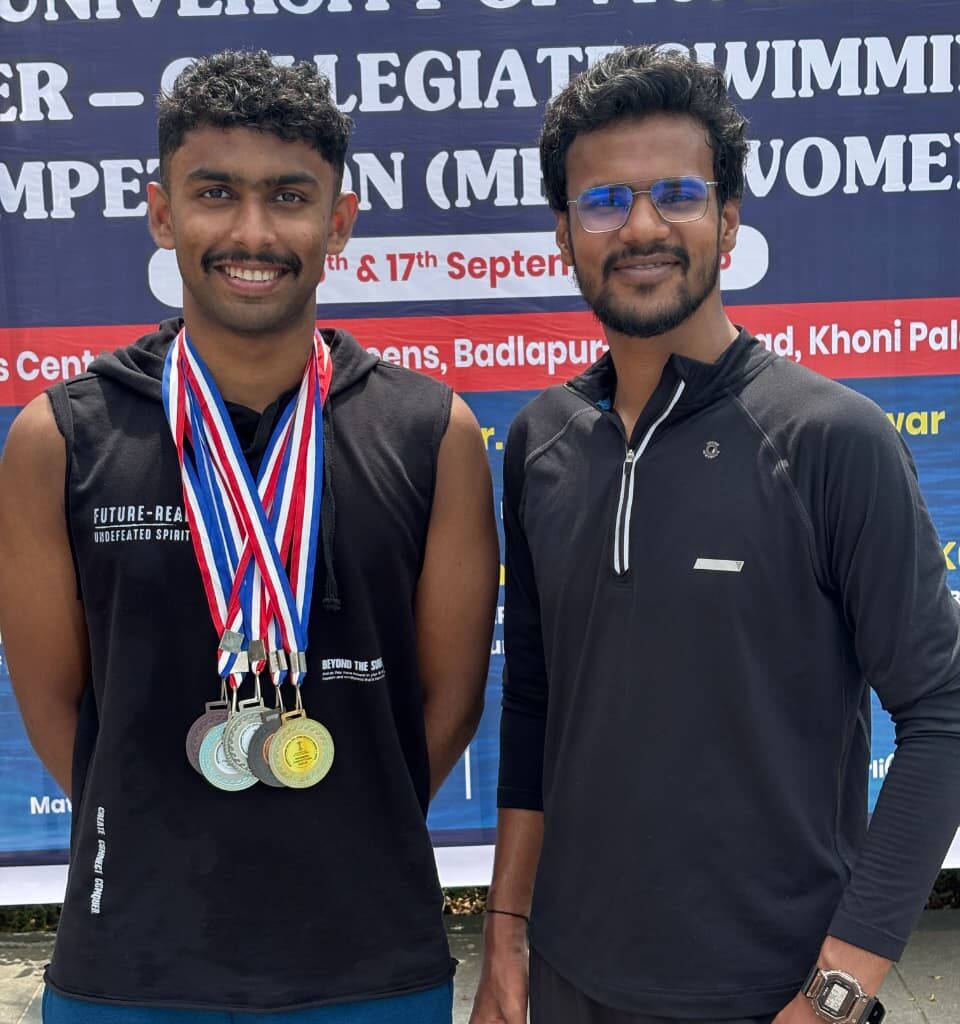 Demonstrating remarkable skill, determination, and endurance, Shubham competed fiercely across various swimming categories. His stellar performance against top athletes from across the university culminated in an impressive haul of five medals, bringing glory to himself and our institution.